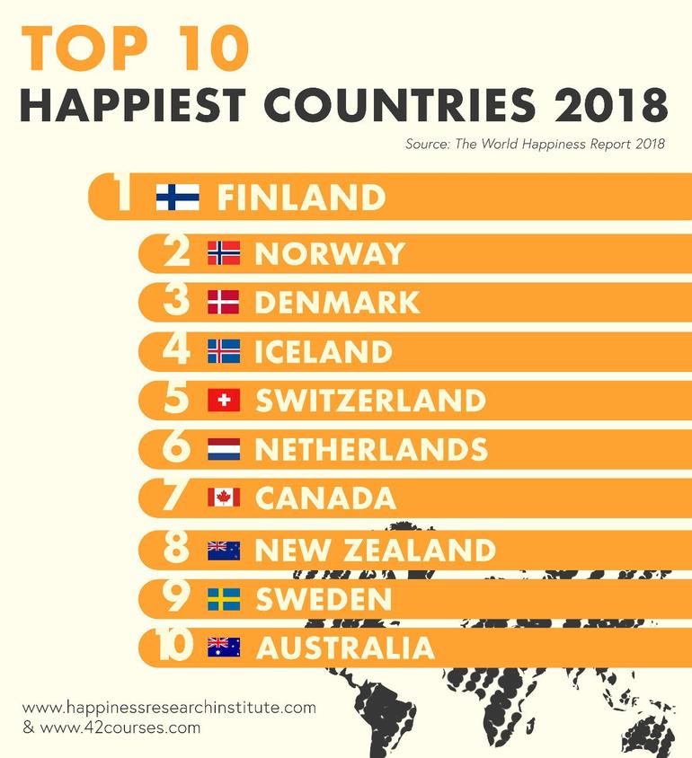 UNSDSN tarafından dünya üzerindeki 156 ülkede yapılan araştırma sonucunda Dünya Mutluluk Raporu 18 (WHR) yayımlandı.