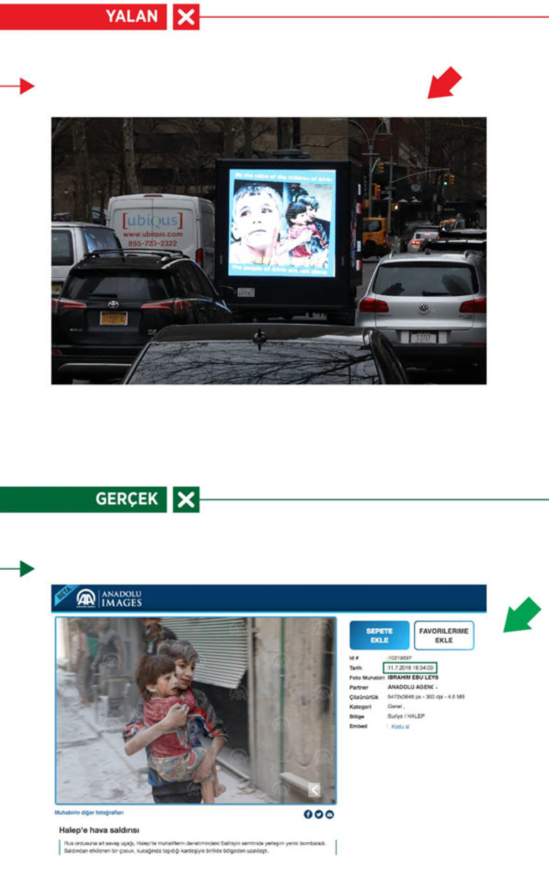 Bilbortta yer alan diğer yaralı çocuk görselinin de yine AA tarafından Halep'te Rus savaş uçaklarının saldırısından sonra çekildiği ve 11 Ekim 2016 tarihli olduğu belirlendi.