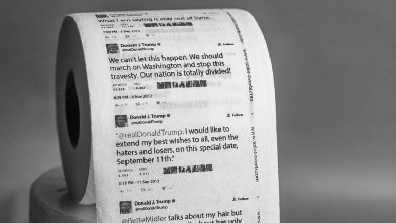 ABD'de bir girişimci, ABD Başkanı Donald Trump'ın tweet'lerinden oluşan bir tuvalet kağıdı hazırladı. Olay yaratan tuvalet kâğıdı Amazon'da satışa sunuldu.