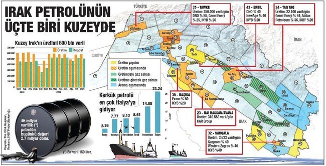 Irak’ın 143 milyar varillik petrolünün üçte birini elinde tutan kuzey bölgesinin ederi gaz hariç tam 2.7 trilyon dolar...