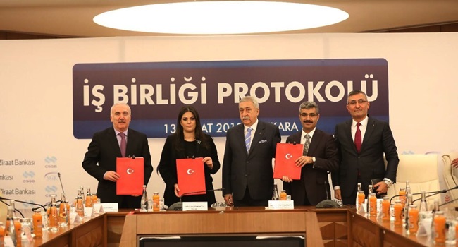 Konuşmaların ardından, Bağlı ve Aydın tarafından emeklilik hakkı doğmuş Bağ-Kur'lu esnafa kredi sağlanmasını içeren iş birliği protokolü imzalandı.