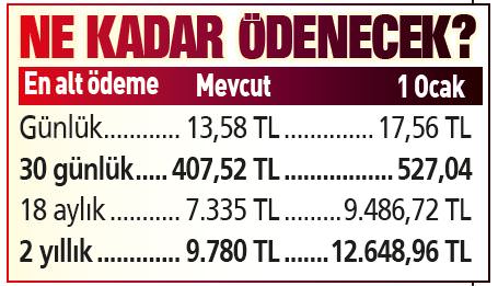 Erken emeklilik, doğum ve askerlik borçlanması yapacaklar elinizi çabuk tutun! Yılbaşı gelmeden harekete geçerseniz en az 2 bin lira kazancınız olacak. Borçlanmada tutarlar asgari ücrete göre belirleniyor. En düşük borçlanma tutarı, brüt asgari ücretin yüzde 32'si oluyor. Şu an doğum ya da askerlik borçlanması yapanlar günlük en az 13 lira 58 kuruş verirken, bu işi Ocak ayına bırakanlar asgari ücretin artmasıyla 17 lira 56 kuruş ödeyecek. 4 gün içinde 1 çocuk için 2 yıllık (24 ay) doğum borçlanması yapılırsa en az 9 bin 780 lira verilecek. 1 Ocak'tan itibaren ise 2 yıl borçlanma için asgari tutar 2 bin 869 lira artışla 12 bin 649 liraya çıkacak. Yine 1 Ocak gelmeden askerlik borçlanması yapılırsa, 18 ay (540 gün) için en az 7 bin 335 lira ödenecek. 1 Ocak'tan itibaren ise bu tutar 2 bin 152 lira artışla 9 bin 487 liraya ulaşacak.