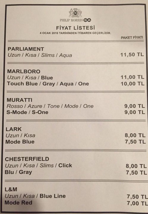 Philip Morris ve Winston, Camel ve Monte Carlo olan JTI (Japan Tobacco International) ise fiyat listesini belirleyen ilk şirketler oldu.
