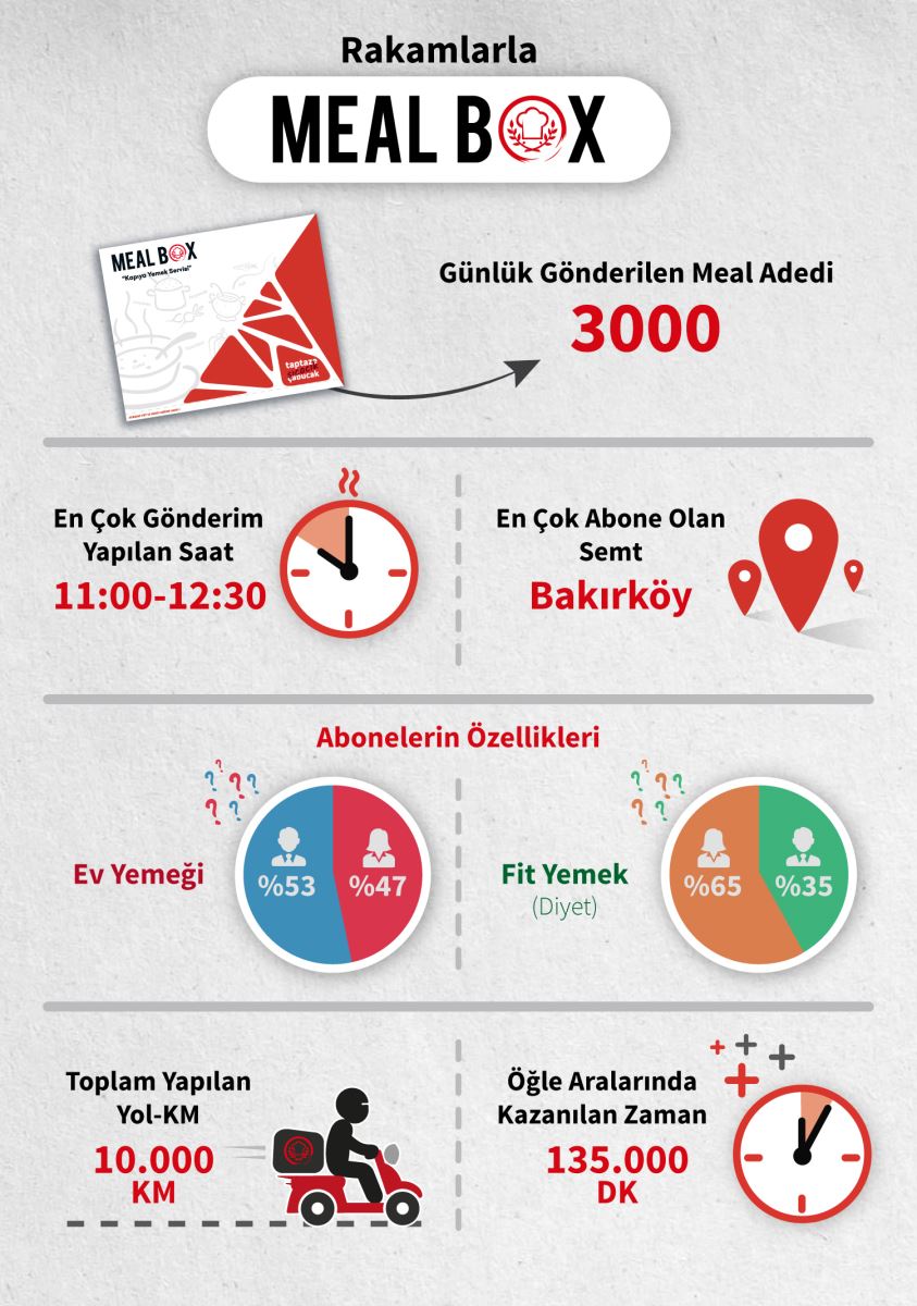 Türkiye’nin kendi yemeğini satan en büyük internet tabanlı kapıya teslim yemek servisi olan Meal Box, hizmet kategorisine her geçen gün bir yenisini ekliyor.Türkiye’nin yemek alanındaki en başarılı “start-up” şirketlerinden biri olan Meal Box, geliştirdiği yeni hizmetiyle 10-100 kişilik küçük ofislere, 1-10 kişilik bireysel müşterilere ve kurumsal firmalara günlük sıcak öğle yemeği servis ediyor.