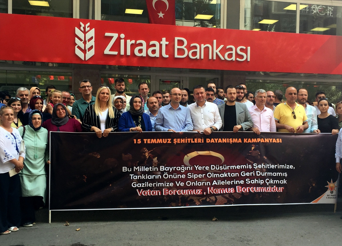 Buradan Ziraat Bankası Kocaeli Şubesi'ne kadar yürüyen yaklaşık 300 partili, 15 Temmuz Dayanışma Kampanyası hesabına bağışta bulundu.