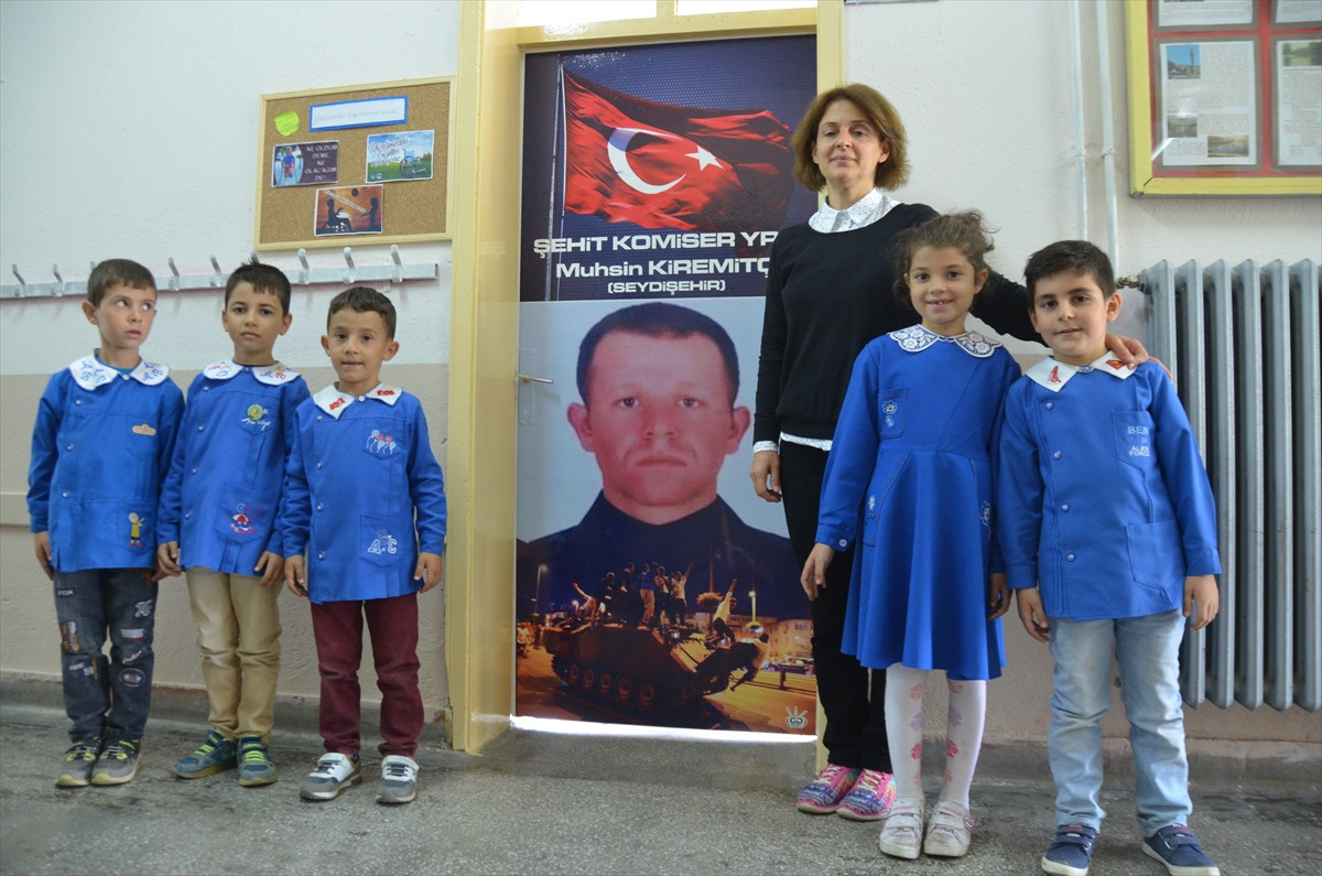KONYA (AA) - Konya'nın Seydişehir ilçesinde, 15 Temmuz şehitlerini ölümsüzleştirmek amacıyla, Selçuklu İlkokulunun sınıf kapılarına, şehit Ömer Halisdemir ve Muhsin Kiremitçi'nin fotoğrafları ile Türk bayrakları asıldı.