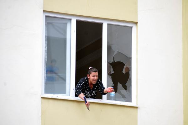 Emine K., geçen 22 Mart'ta da Yirmiikigün Mahallesi'nde apartmanın ikinci katında oturduğu evi ateşe vermişti. Yangın büyümeden söndürülürken, Emine K., televizyon ve çeşitli eşyaları dışarı attıktan sonra pencereye çıkarak ekmek bıçağıyla bileğini kesmiş ve polislerin 4.5 saat süren çabasıyla ikna edilebilmişti.
