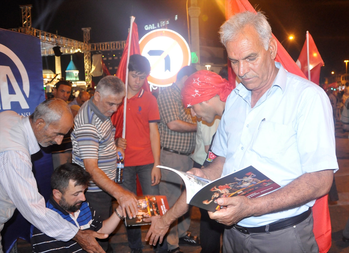 Darbe girişiminde yaşanan tüm gelişmelerin, AA muhabirlerinin anlık haberleri ve olay anındaki fotoğraflarıyla kronolojik bir sıraya göre derlendiği kitaba, Mevlana Meydanı'nda demokrasi nöbeti tutan vatandaşlar büyük ilgi gösterdi.