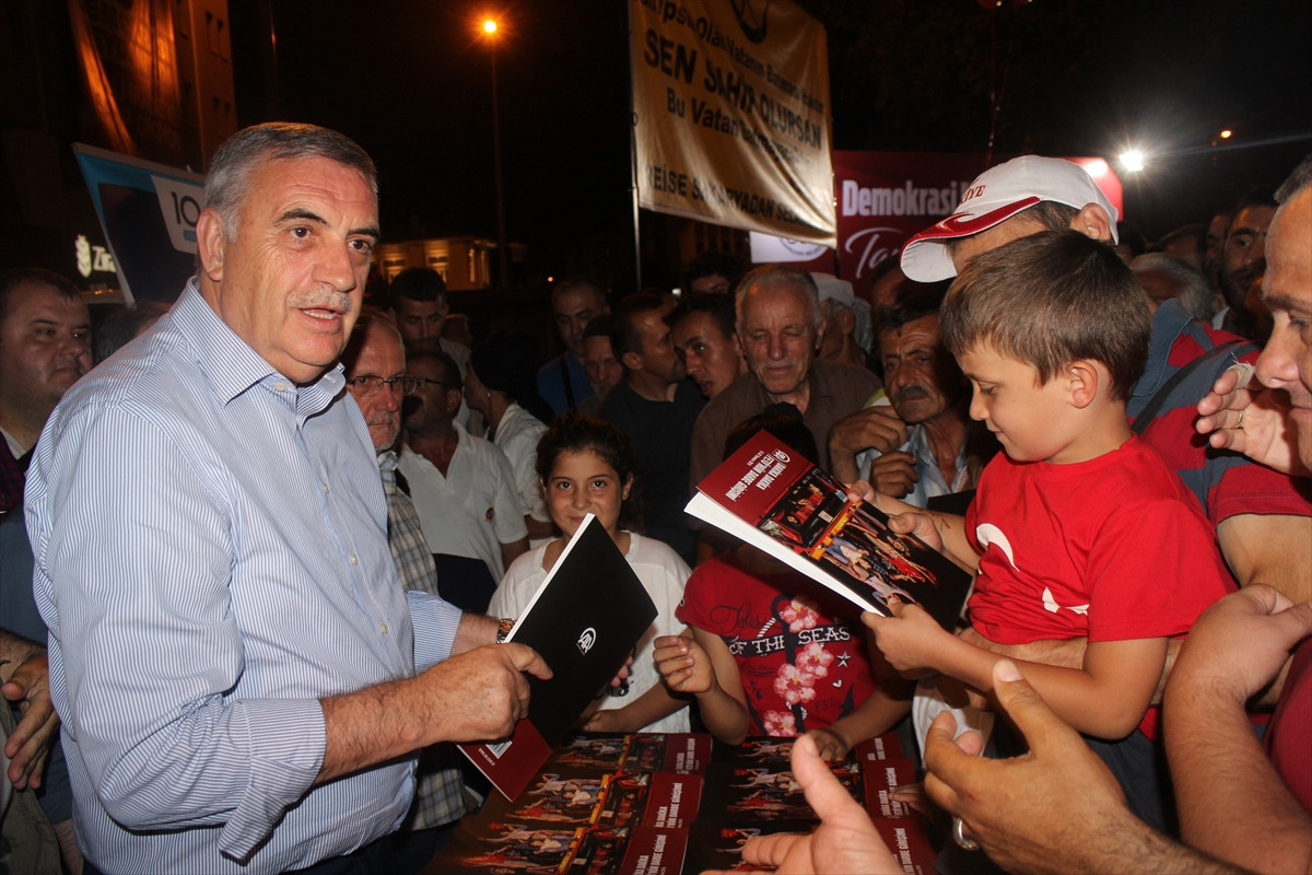 SAKARYA (AA) - Anadolu Ajansı (AA) tarafından hazırlanan "Dakika Dakika FETÖ'nün Darbe Girişimi" kitabı, Sakarya'da demokrasi nöbeti tutan vatandaşlara dağıtıldı.
