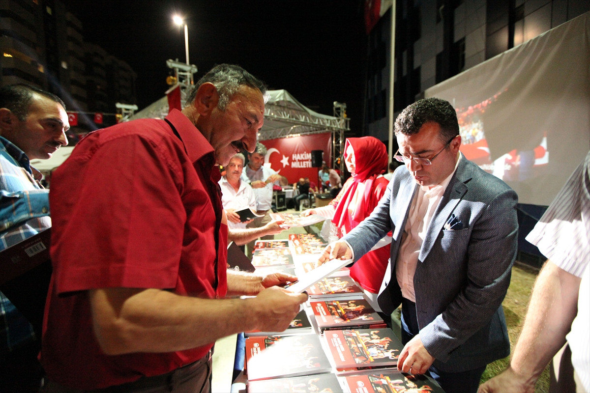 Atakum Belediye binasının bulunduğu alanda demokrasi nöbeti tutan vatandaşlar için açılan stantta, darbe girişiminde yaşanan tüm gelişmelerin, AA muhabirlerinin anlık haberleri ve olay anındaki fotoğraflarıyla kronolojik bir sıraya göre derlendiği kitabın dağıtımı yapıldı.