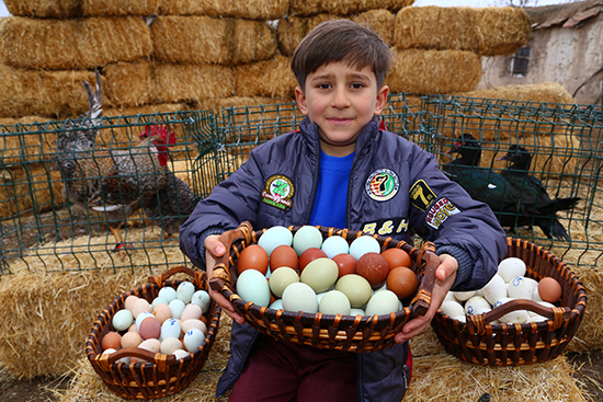 Aksaray'da 4 yıl önce köyünde çiftlik kuran Halis Katman, değişik türde tavuk, kaz ve ördek yetiştirip, renkli yumurtalarını satarak geçimini sağlıyor.
