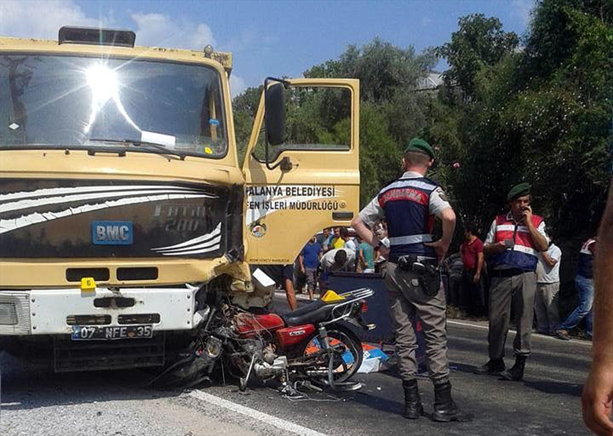 Alınan bilgiye göre, K.B idaresindeki 07 NFE 35 plakalı kamyon, Payallar Mahallesi Merkez Camisi önünde 07 HUC 89 plakalı motosikletle çarpıştı.