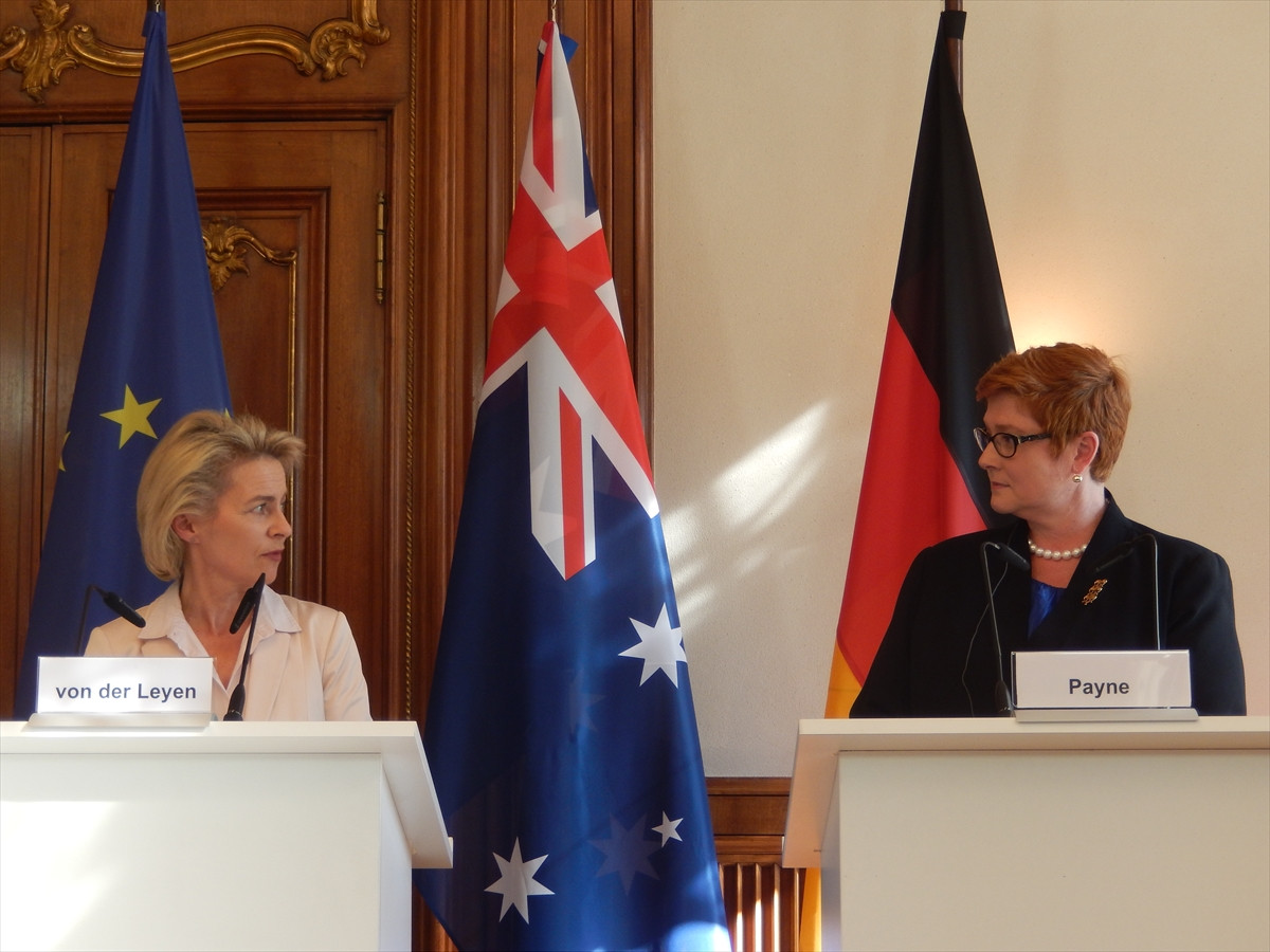 Von der Leyen, Almanya ve Avustralya’nın dışişleri ile savunma bakanlarının Berlin’de yaptıkları dörtlü görüşme sonrasında düzenlenen ortak basın toplantısında gündemdeki konulara ilişkin soruları cevapladı.