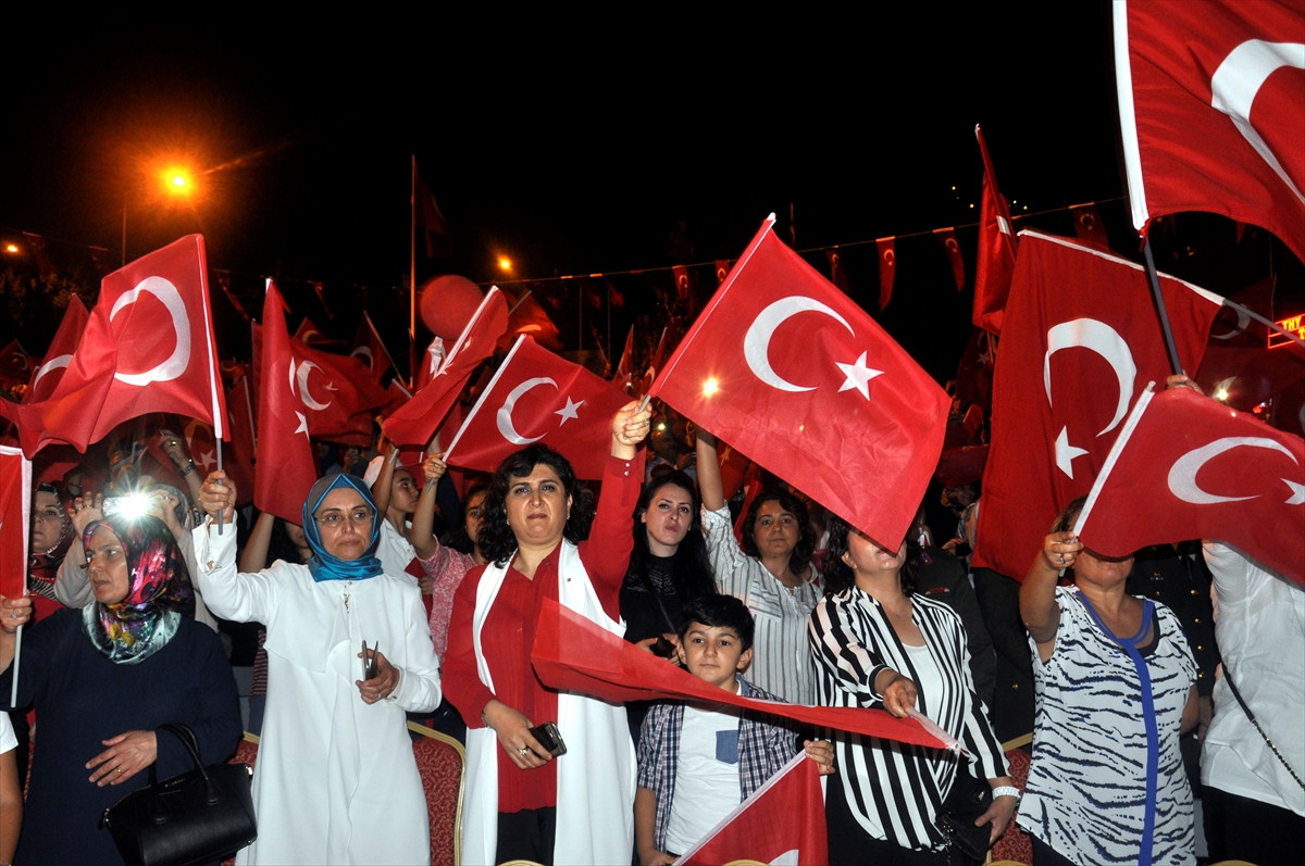 Yavuz Selim Meydanı'nda düzenlenen Demokrasi ve Şehitler Mitingi'nde vatandaşlar, ellerinde Türk bayraklarıyla "Şehitler ölmez vatan bölünmez", "Ne mutlu Türküm diyene" ve "FETÖ'ye idam" sloganları attı.