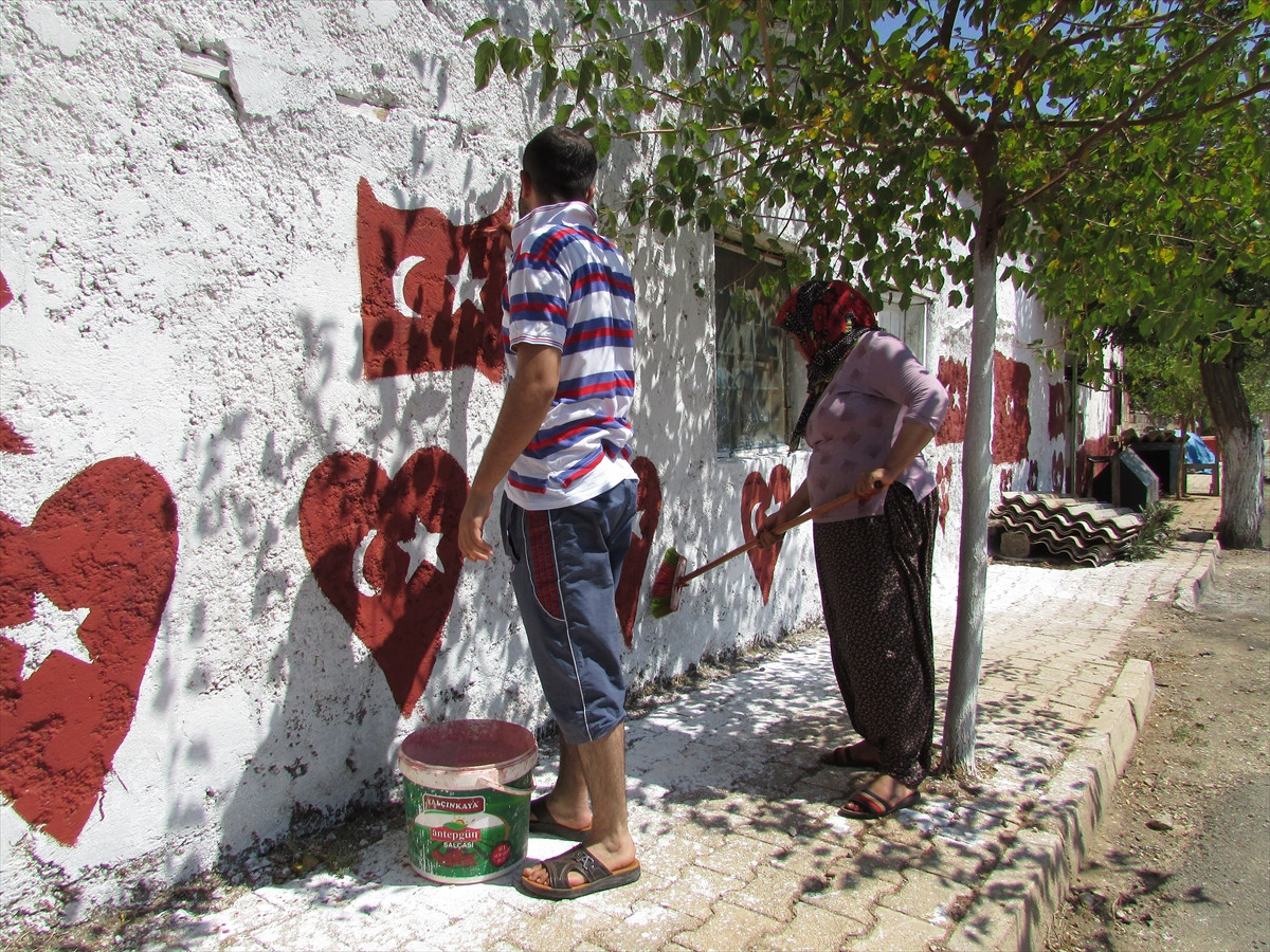 İlçede boyacılık yaparak geçimini sağlayan 24 yaşındaki Kasım Cuma Akpınar, annesi Hafize ile el ele vererek evini kırmızı-beyaza boyadı. FETÖ'nün darbe girişimini protesto etmek isteyen anne-oğul, evlerinin önce dış cephesini beyaza boyadı. Daha sonra beyaz zeminin üzerine kalp ve bayrak figürleri işledi. Kasım Cuma Akpınar, AA muhabirine yaptığı açıklamada, darbe girişiminin yaşanmasıyla beraber tüm Türkiye'nin birlik olduğunu, bunun da herkesi sevindirdiğini söyledi. FETÖ'nün darbe girişimine tepki göstermek ve vatan sevgisini dile getirmek için evini boyama kararı aldığını anlatan Akpınar, annesinin yardımıyla yaptığı çalışmanın komşularınca çok beğenildiğini belirtti. Evi boyarken bazı vatandaşların kendilerine alkışla teşekkür ettiğini dile getiren Akpınar, "Aslında tüm mahalleyi böyle boyamak istedim ama boya yetmedi." dedi.