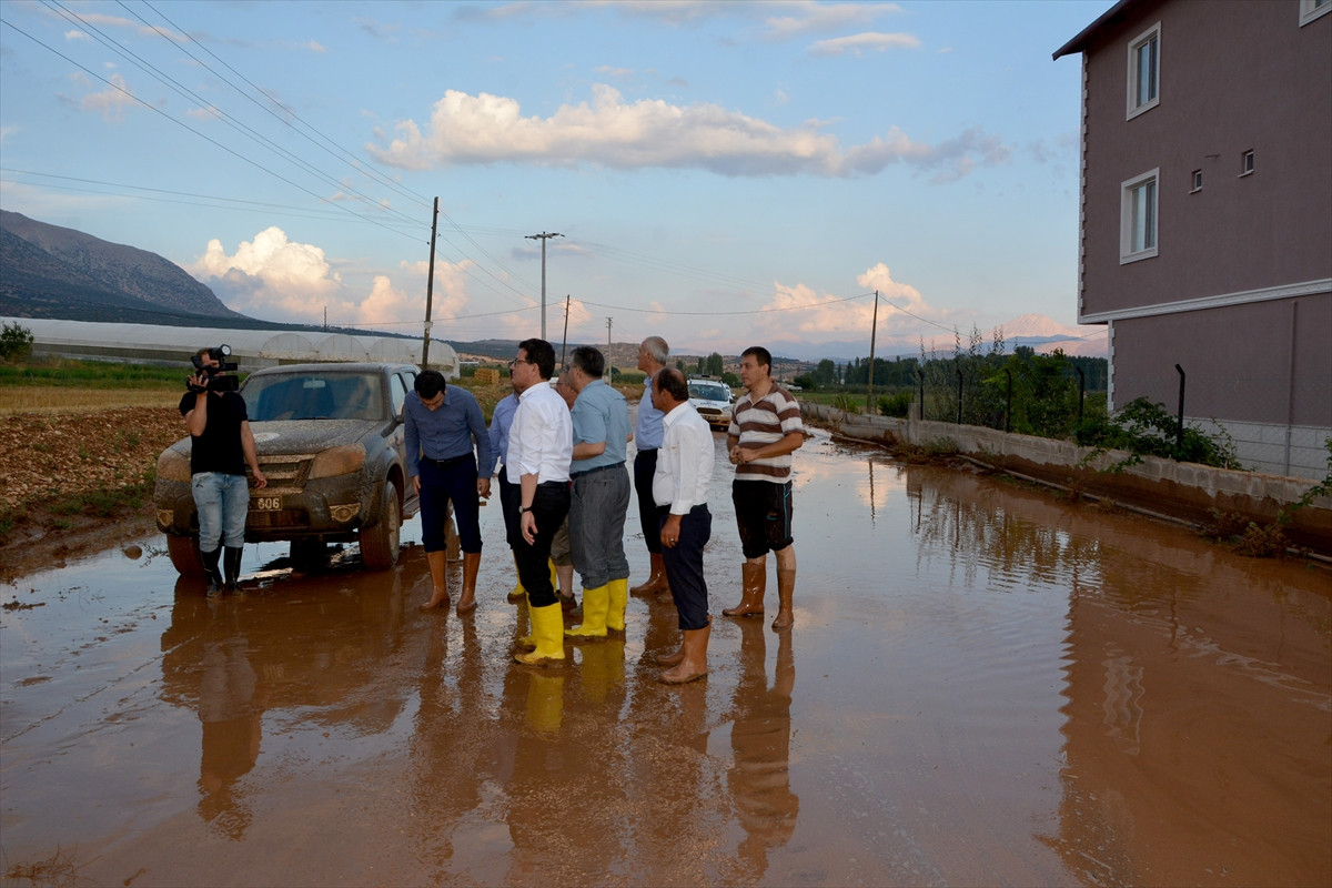 Bölgede inceleme yapan AK Parti Antalya milletvekilleri Hüseyin Samani, Mustafa Köse ve Atay Uslu ile Elmalı Belediye Başkanı Ümit Öztekin vatandaşlara "Geçmiş olsun" dileğinde bulundu.
