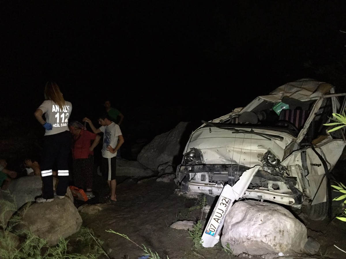ANTALYA (AA) - Antalya'da uçuruma yuvarlanan kapalı kasa kamyonette bulunan 11 kişiden 2'si öldü, 9'u yaralandı.