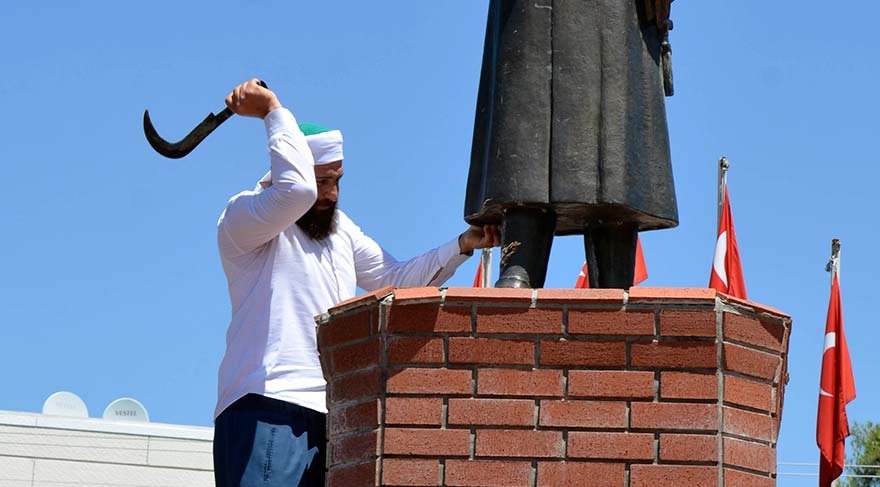 Şanlıurfa’nın Siverek İlçesi’nde, seyyar satıcılık yapan Mehmet Malbora geçtiğimiz ay ’Dinimizde putperestliğe yoktur’ diye bağırarak Cumhuriyet Meydanı’nda bulunan Atatürk heykeline elindeki tahra ile zarar vermeye kalkıştı.