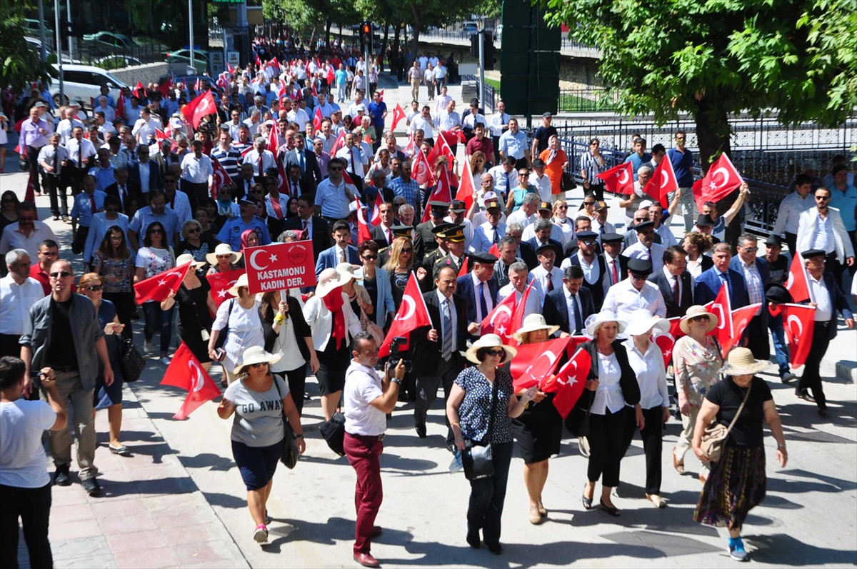 Kastamonu Valiliği tarafından düzenlenen yürüyüşte protokol üyeleri ve vatandaşlar, Olukbaşı mevkisinden Cumhuriyet Meydanı'na kadar yürüdü.