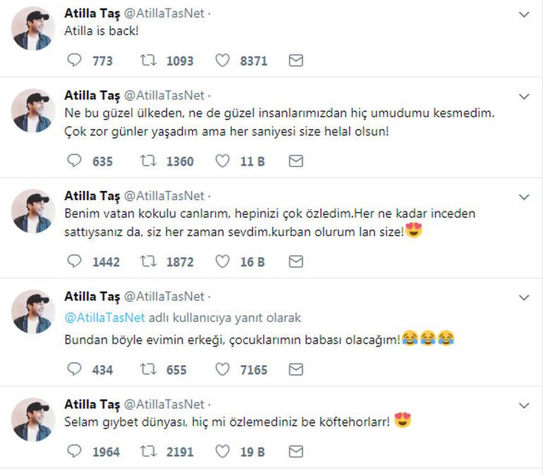 Taş, mesajında “Benim vatan kokulu canlarım, hepinizi çok özledim. Her ne kadar inceden sattıysanız da, siz her zaman sevdim. Kurban olurum lan size!” dedi.