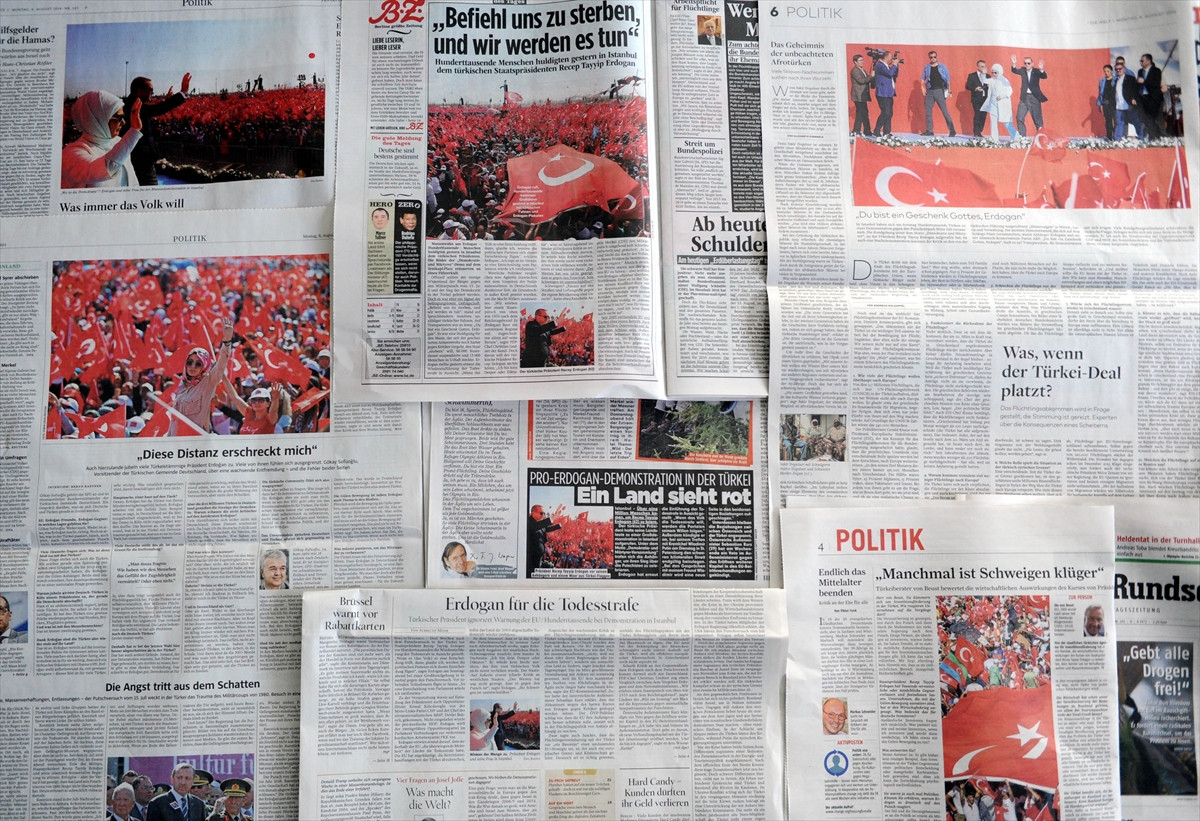 İsviçre'nin Almanca yayım yapan 20 Minuten gazetesi ise haberinde darbe girişiminin ardından yüzbinlerce kişinin "birlik mesajı vermek için İstanbul'da bir araya geldiğini" vurguladı.
