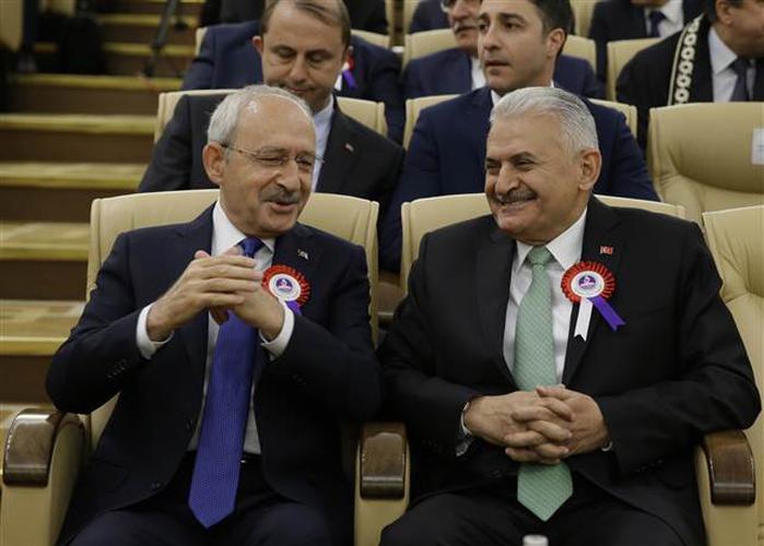 Meclis'teki 23 Nisan Özel oturumunda tansiyon yükselmişti. Bugünkü törende Başbakan Binali Yıldırım ile CHP lideri Kemal Kılıçdaroğlu'nun sohbet ettiği, gülümsedikleri görüldü.