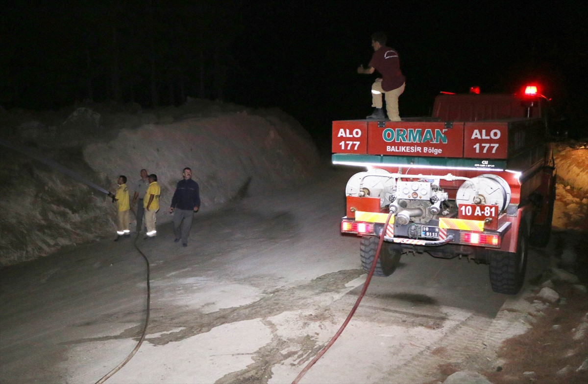 Şu ana kadar yaklaşık 20 hektarlık alanın zarar gördüğü yangına, Balıkesir, Çanakkale ve İzmir'den gelen 30 arazöz ve yaklaşık 200 orman işçisiyle müdahale edilirken Balıkesir Büyükşehir Belediyesinin itfaiye araçları ve iş makineleri de çalışmalara destek veriyor.