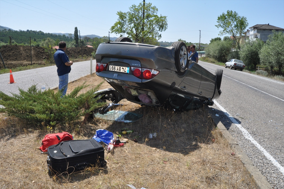 BARTIN (AA) - Bartın'da otomobilin takla atması sonucu aynı aileden 3'ü çocuk 5 kişi yaralandı.