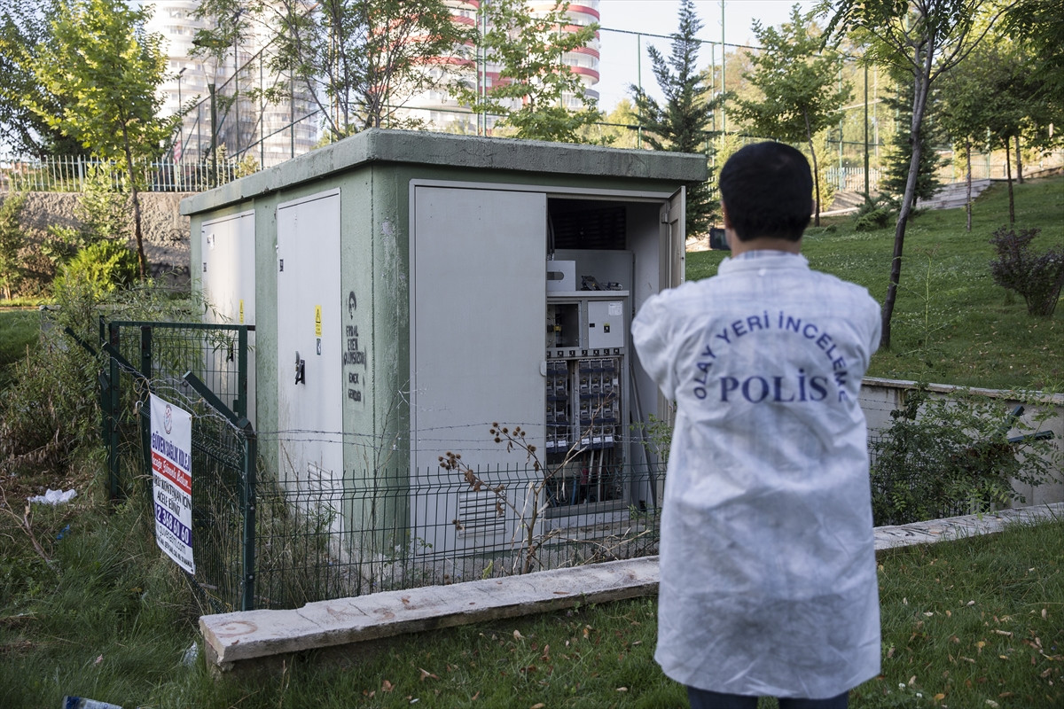 Olay yeri inceleme ekipleri, Demokrasi Parkı'ndaki trafoda şüphelilere ait parmak izi araması yaptı.