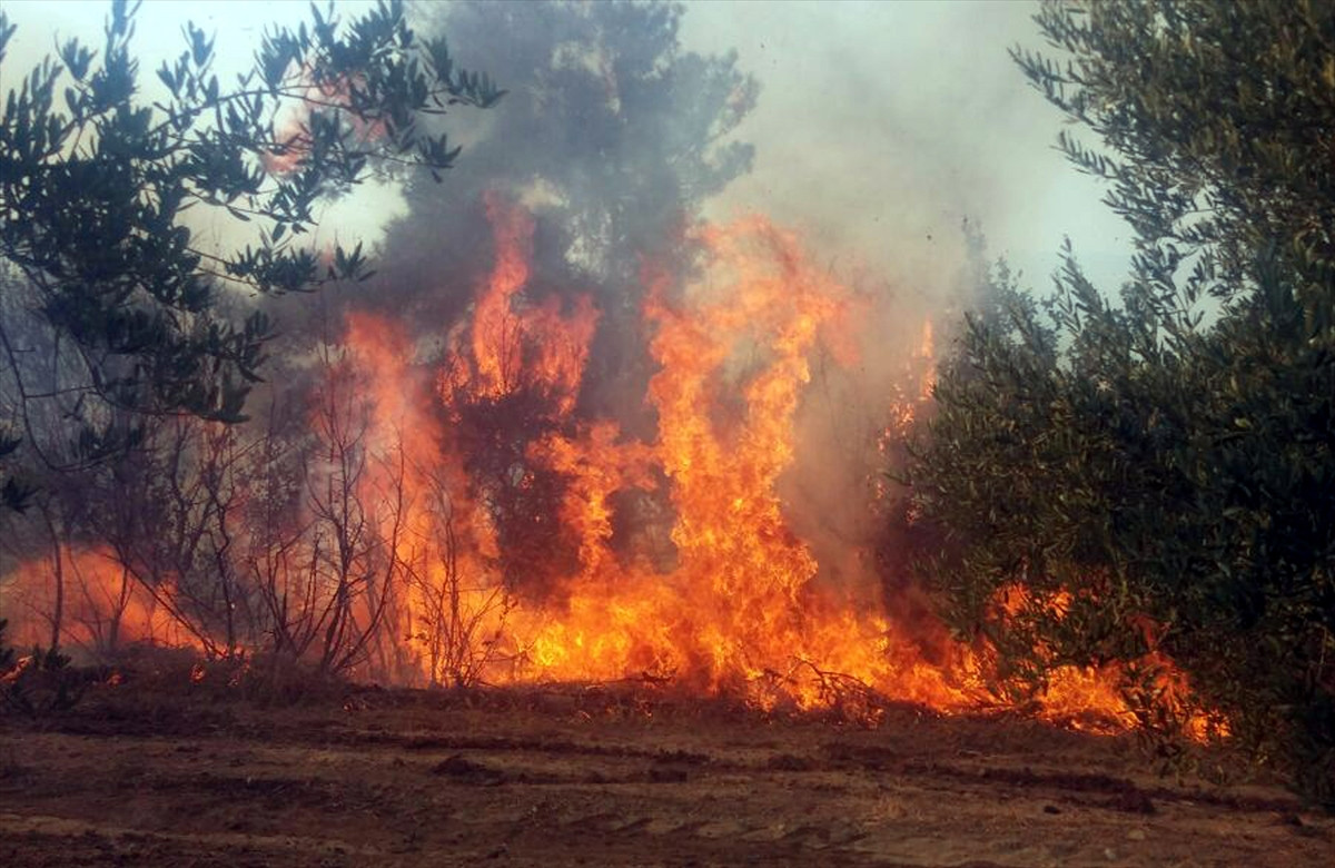 Ormanlık alandaki yangının, zeytinlik ve sebze ve meyve bahçelerine sıçradığı bildirildi.