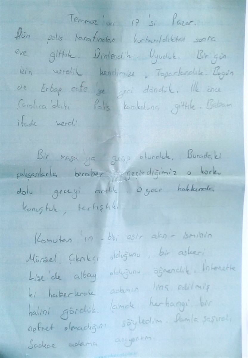 Yaşananlara tanıklık eden bazı insanlarda da travmatik etki yaratan o sıcak saatler, "darbe" kelimesinin ne anlama geldiğini o güne kadar duymayan 15 yaşındaki Halenur Türkan'ın kalemiyle tarihe bir not olarak düştü.