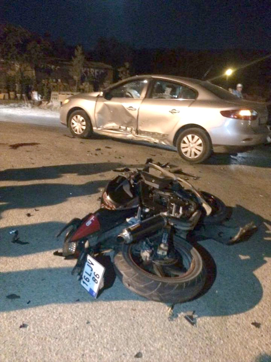 Alınan bilgiye göre, İznik'ten Yenişehir yönüne giden Emre Bayram'ın (25) kullandığı 16 LJV 86 plakalı motosiklet, tali yoldan çıkan A.Y.G. yönetimindeki 34 JD 2746 plakalı otomobille çarpıştı.