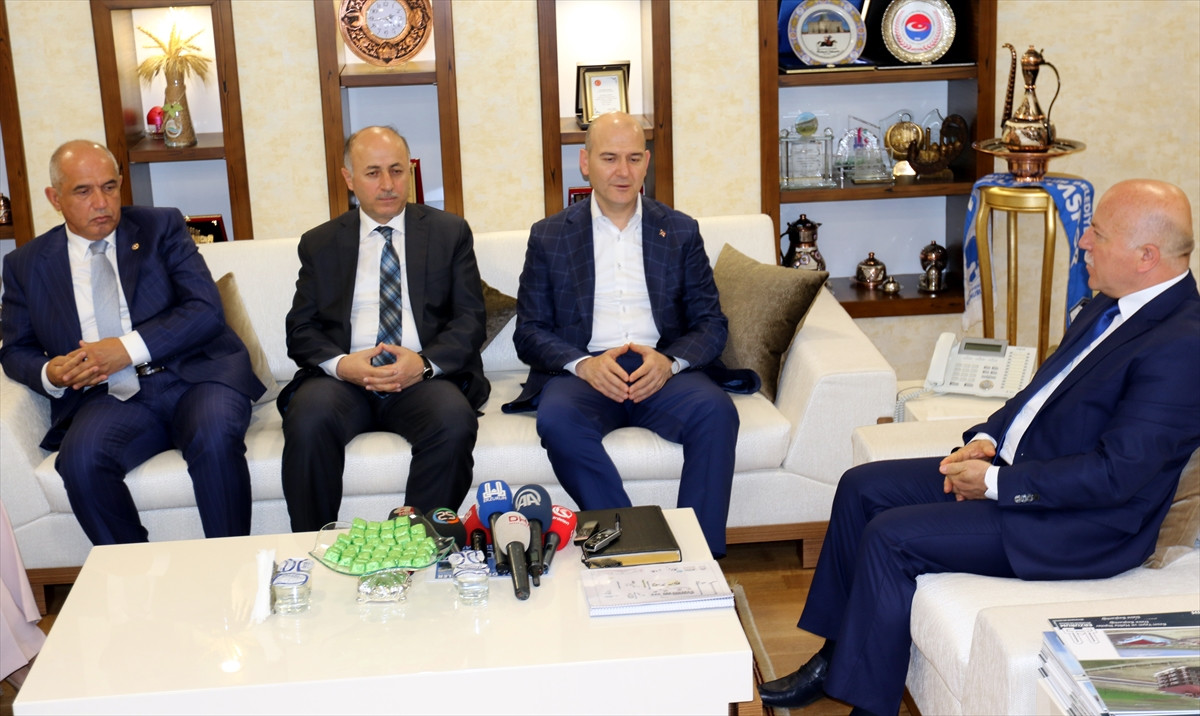 Bakan Soylu, Erzurum Büyükşehir Belediye Başkanı Mehmet Sekmen'i makamında ziyaret etti. Soylu, burada yaptığı konuşmada, FETÖ'nün 15 Temmuz'daki darbe girişiminden sonra kamu çalışanlarının da incelemeye alındığını bildirdi.
