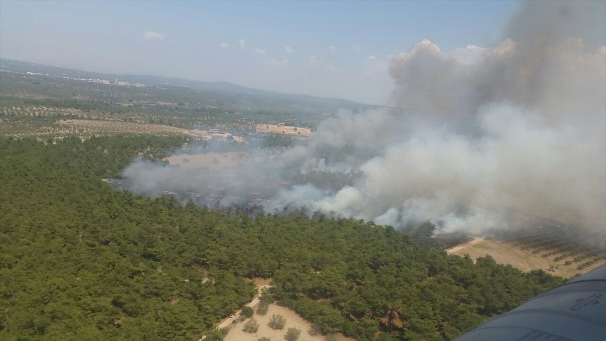 Arazözler ve 2 helikopterle müdahale edilen yangın kontrol altına alındı.