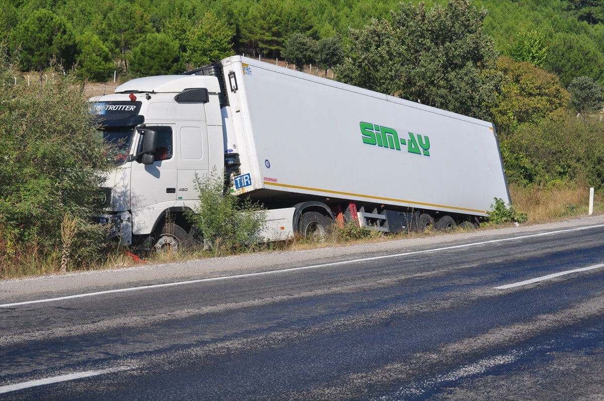 Alınan bilgiye göre, İzmir'den Çanakkale'ye giden İbrahim Yılmaz'ın (56) kullandığı 31 AYY 27 plakalı tır, Ayvacık ilçesi yakınlarında şarampole devrildi.