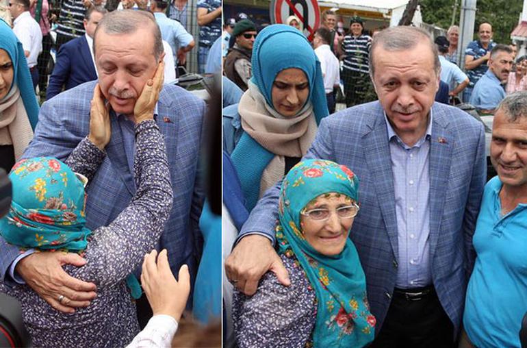 Erdoğan, helikoptere binmek üzere geldiği Kopmuş mevkisi civarında da yine aracından inerek vatandaşlarla sohbet etti ve bir vatandaşın cebindeki sigara paketini aldı.