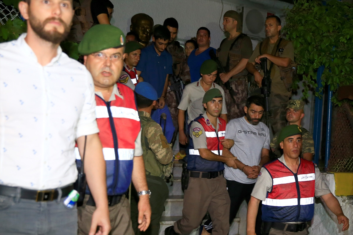 MUĞLA (AA) - FETÖ'nün darbe girişimi sırasında Cumhurbaşkanı Recep Tayyip Erdoğan'ın ayrılmasının ardından, Marmaris'te konakladığı otele saldırı düzenleyenler arasında bulunan ve Muğla'nın Ula ilçesinde yakalanan 9 asker, Çetibeli Jandarma Karakolu'ndaki işlemlerinin ardından Muğla'ya gönderildi.