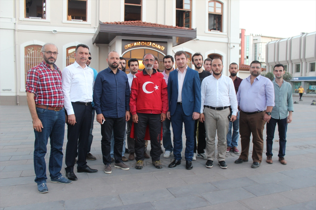 SAKARYA (AA) - Fetullahçı Terör Örgütü'nün (FETÖ) darbe girişimine tepki amacıyla cuma günü Eyüp Sultan Camisi'nde kılınan sabah namazının ardından yürüyerek Ankara'ya doğru yola çıkan aktivist ve yazar İbrahim Çolak, Sakarya'ya ulaştı.