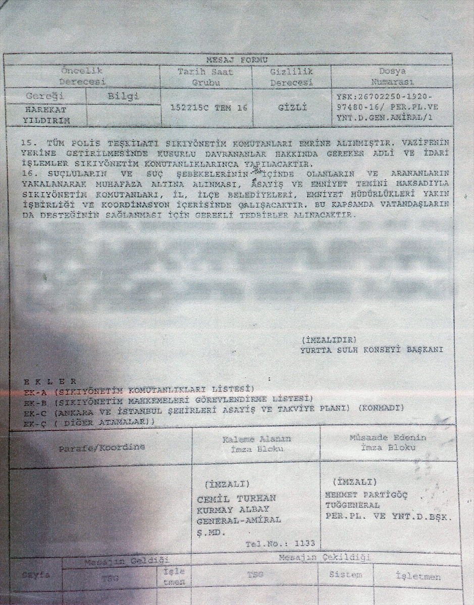 Ayrıca planın ekinde, sıkıyönetim komutanlıkları ile sıkıyönetim mahkemeleri görevlendirme listesi ve diğer atamaların da olduğu öğrenildi.