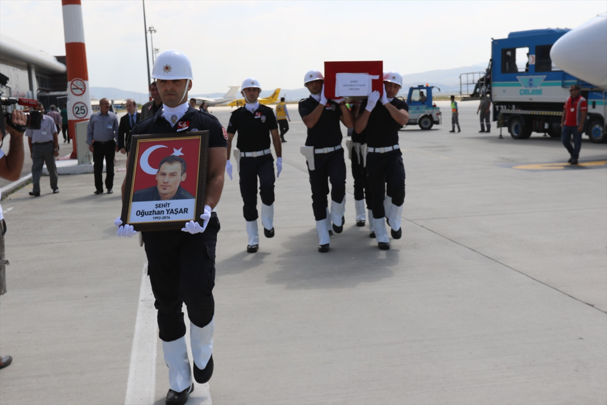 ERZURUM (AA) - Fetullahçı Terör Örgütü'nün (FETÖ) darbe girişimi sırasında Cumhurbaşkanlığı Külliyesi önünde uçaklardan atılan bombalar nedeniyle başından ağır yaralanan ve kaldırıldığı hastanede şehit olan Oğuzhan Yaşar'ın cenazesi, memleketi Erzurum'a getirildi.