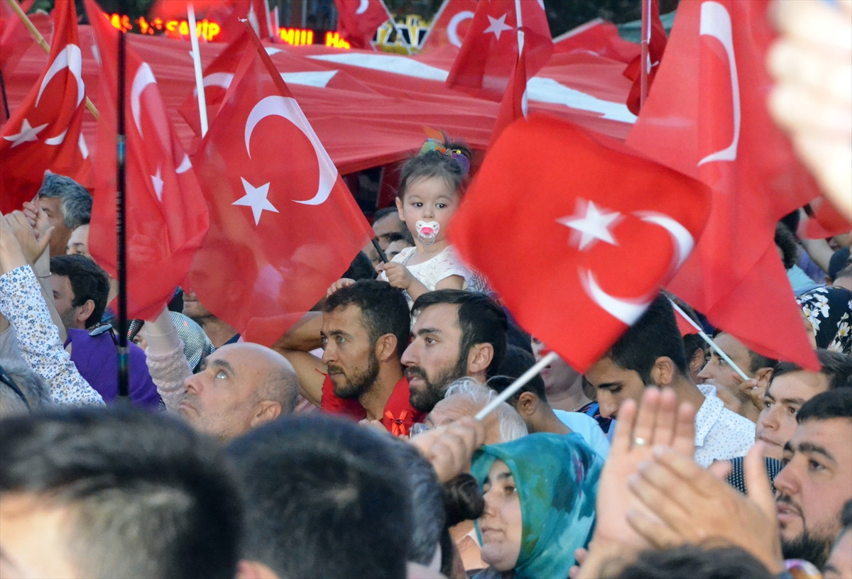 Cumhuriyet Meydanı'ndaki mitinge, 2. Jandarma Eğitim Tugay Komutanı Tuğgeneral Halis Zafer Koç, İl Jandarma Komutanı Albay Hacı Mehmet İnce, İl Emniyet Müdürü Ertuğrul Namal, İlçe Kaymakamları, İlçe Belediye Başkanları, AK Parti, CHP ve MHP İl Başkanları ile çok sayıda vatandaş katıldı.