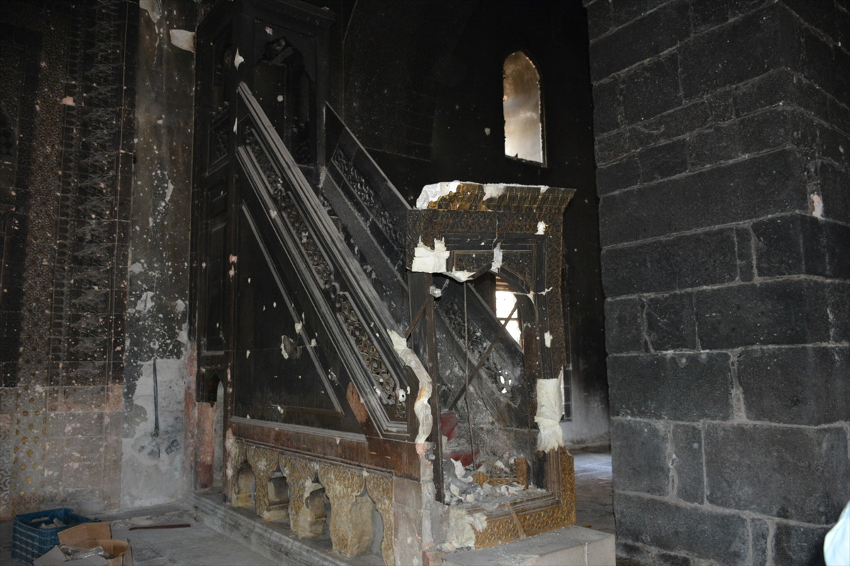 DİYARBAKIR (AA) - Diyarbakır'ın Sur ilçesinde PKK'lı teröristlerce ik kez ateşe verilen tarihi Fatihpaşa Camisi (Kurşunlu Camisi) restore ediliyor.