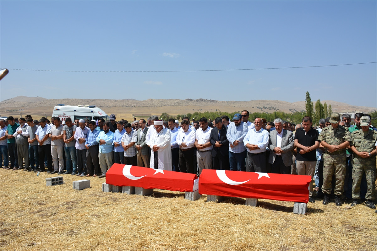 Türk bayraklarına sarılı cenazeler götürüldüğü köy mezarlığında kılınan cenaze namazının ardından yan yana defnedildi. Törende Behiye ve Derya Aydın'ın yakınları ağıtlar yaktı.
