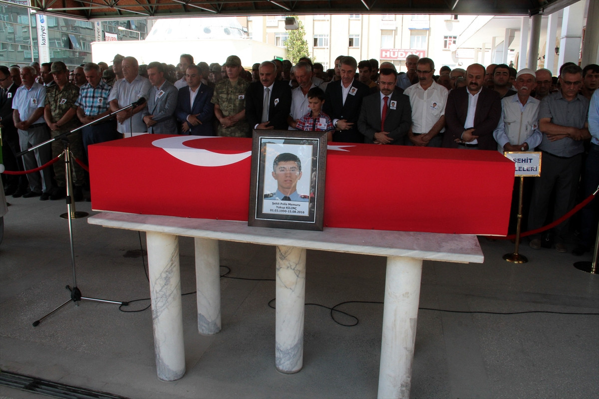 Evli ve 3 yaşında Şeyma Nisa adında bir kızı olan şehit Yakup Kılınç'ın (26) Türk bayrağına sarılı naaşı, meslektaşlarının omuzlarında İzzetpaşa Camisi'ne getirildi. Şehidin babası Mahmut Kılınç ve kardeşi tören boyunca gözyaşlarına hakim olamadı.