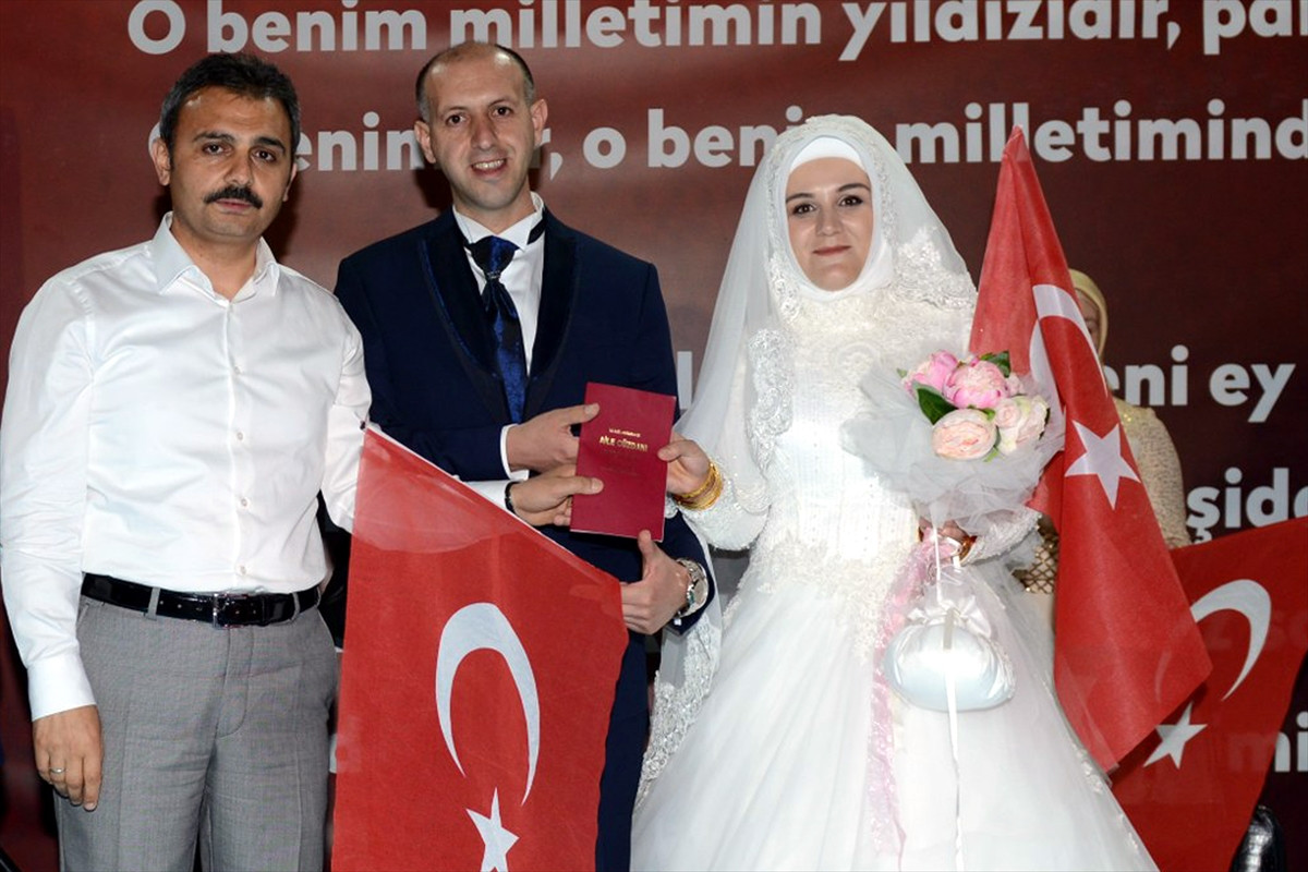 ÇORUM (AA) - Çorum'da düğünden çıktıktan sonra Fetullahçı Terör Örgütü'nün (FETÖ) darbe girişiminin ardından başlatılan demokrasi nöbetine katılan gelin ve damat, evlilik cüzdanlarını meydanda aldı.