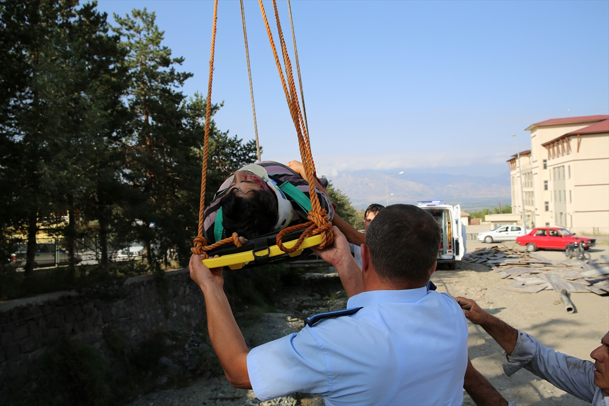 ERZİNCAN (AA) - Erzincan'ın Üzümlü ilçesinde dereye düşerek yaralanan kişi, beton pompasıyla kurtarıldı.