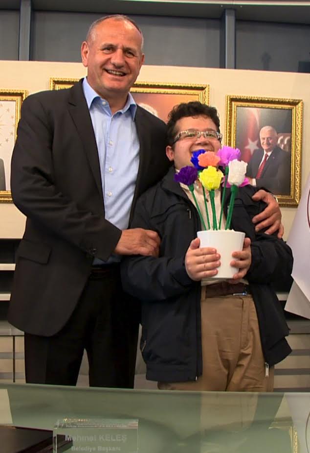 Düzce Belediye Başkanı Mehmet Keleş’in bugün özel konukları vardı. Duygum Özel Eğitim Rehabilitasyon Merkezi'nde eğitim gören Osman Nuri Öztürk ve Ahmet Koçak, öğretmenlerinin yardımı ile yaptıkları çiçeği belediye başkanı Keleş’e hediye etti.