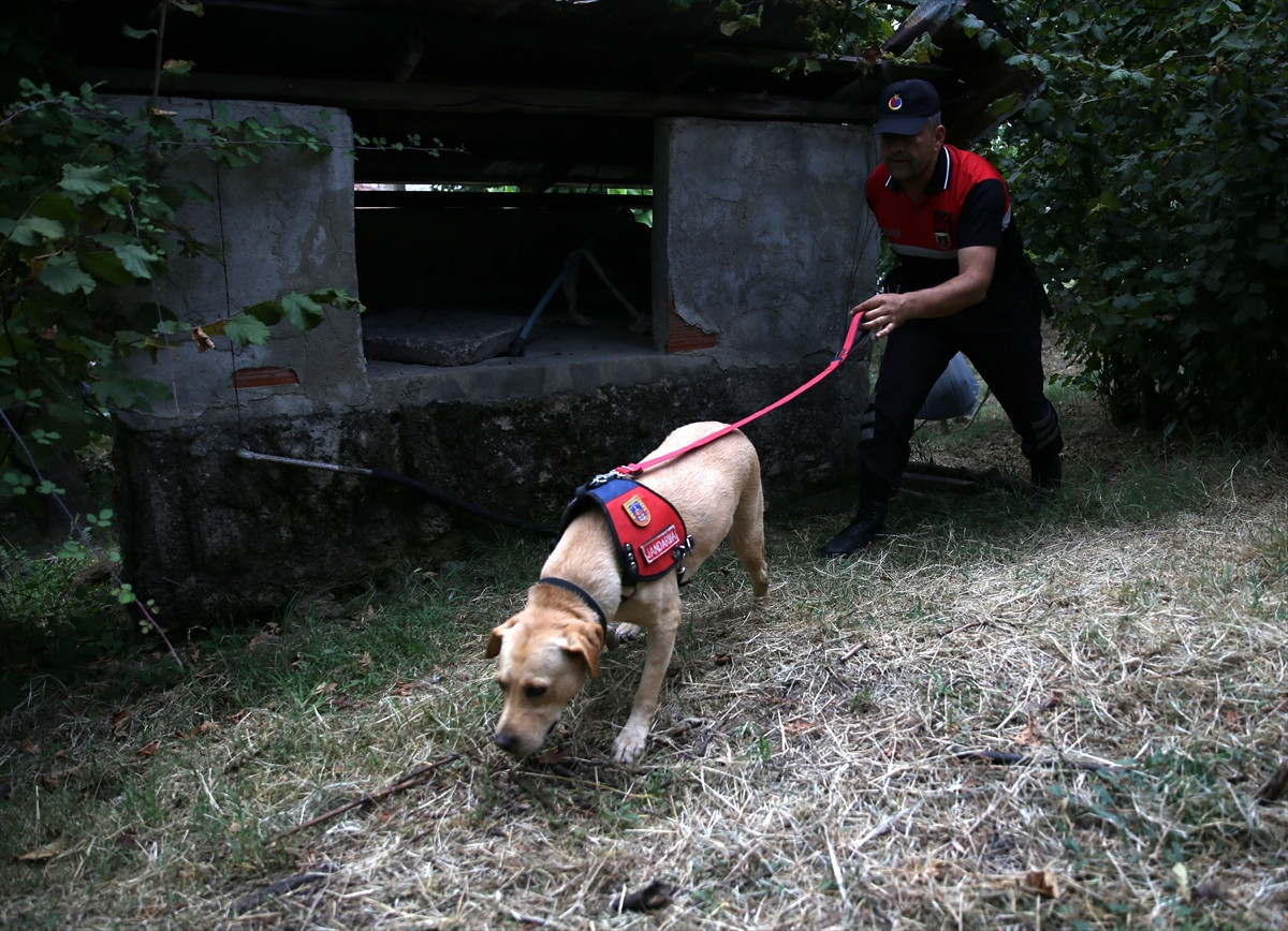DÜZCE (AA) - Düzce'nin Kaynaşlı ilçesinde fındık bahçesi tartışması sebebiyle çıkan silahlı kavgada 2 kişiyi öldüren, 3 kişiyi yaralayan baba-oğulu yakalamak üzere başlatılan çalışmalara jandarma iz takip köpeği "Ekin" de katıldı.