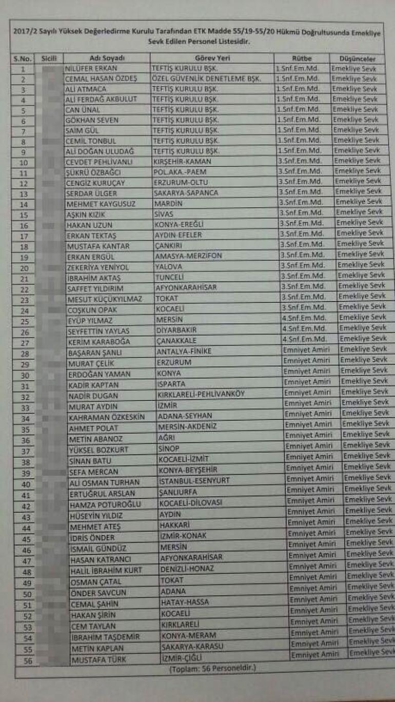 Emniyette emeklilik depremi... Emniyet Genel Müdürlüğünde 56 emniyet mensubu emekliliğe sevk edildi.