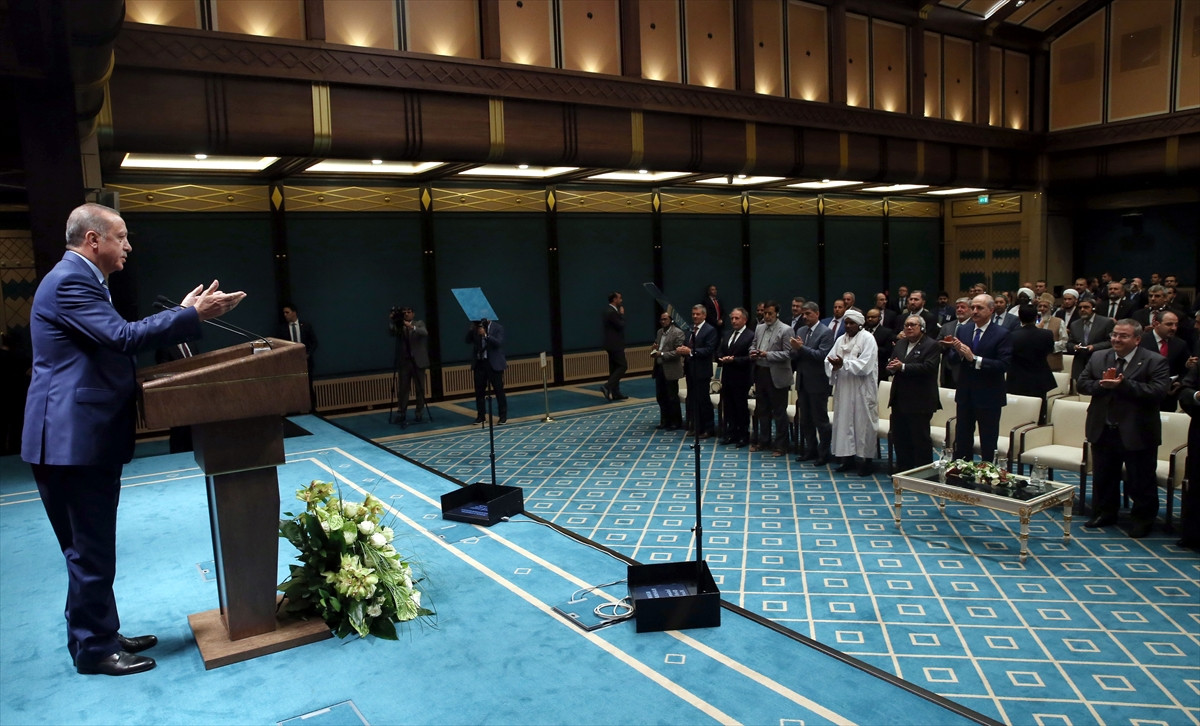 Türkiye'nin terör örgütleriyle yürüttüğü mücadele ve bölgesel sorunlar konusunda geliştirdiği inisiyatifler yanında, gündemindeki tüm meseleleri takip etmeyi sürdüren bir ülke olduğunu ifade eden Erdoğan, bu çerçevede üzerinde en çok durdukları ve üzüldükleri hususlardan birinin de İslam dünyasının kendi içindeki ihtilafları, sıkıntıları çözemeyişi olduğunu kaydetti.